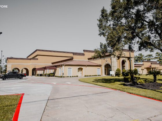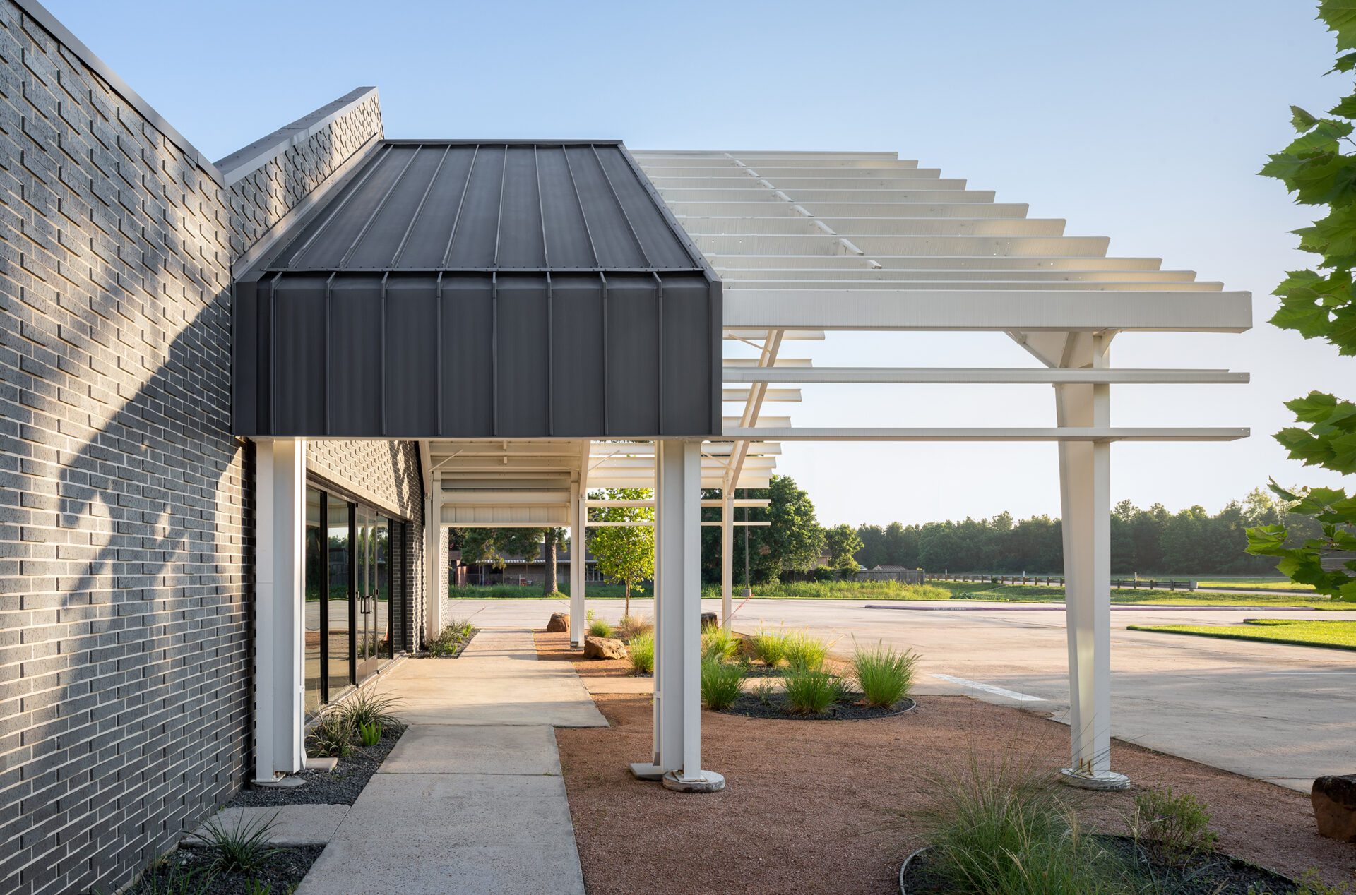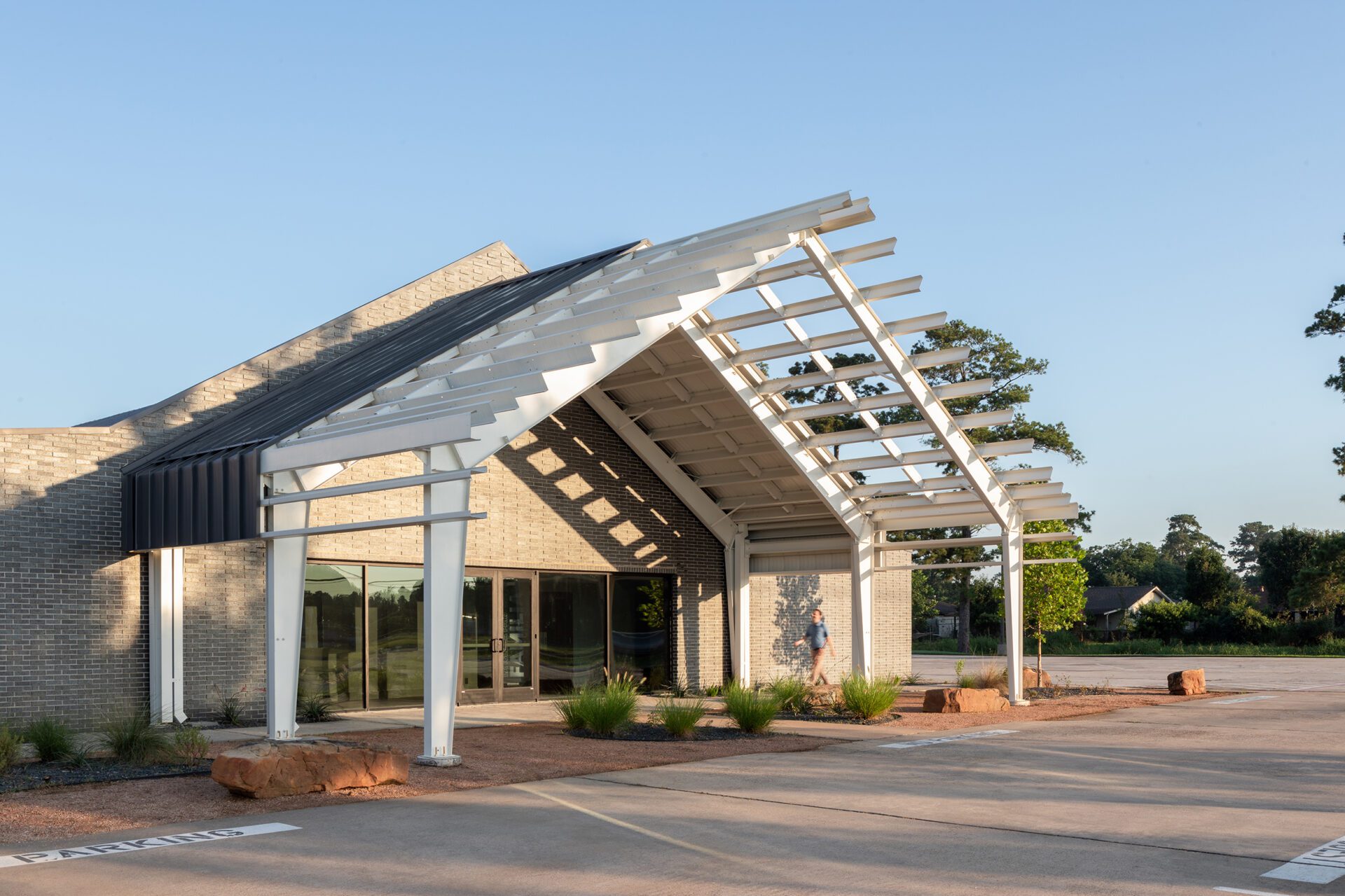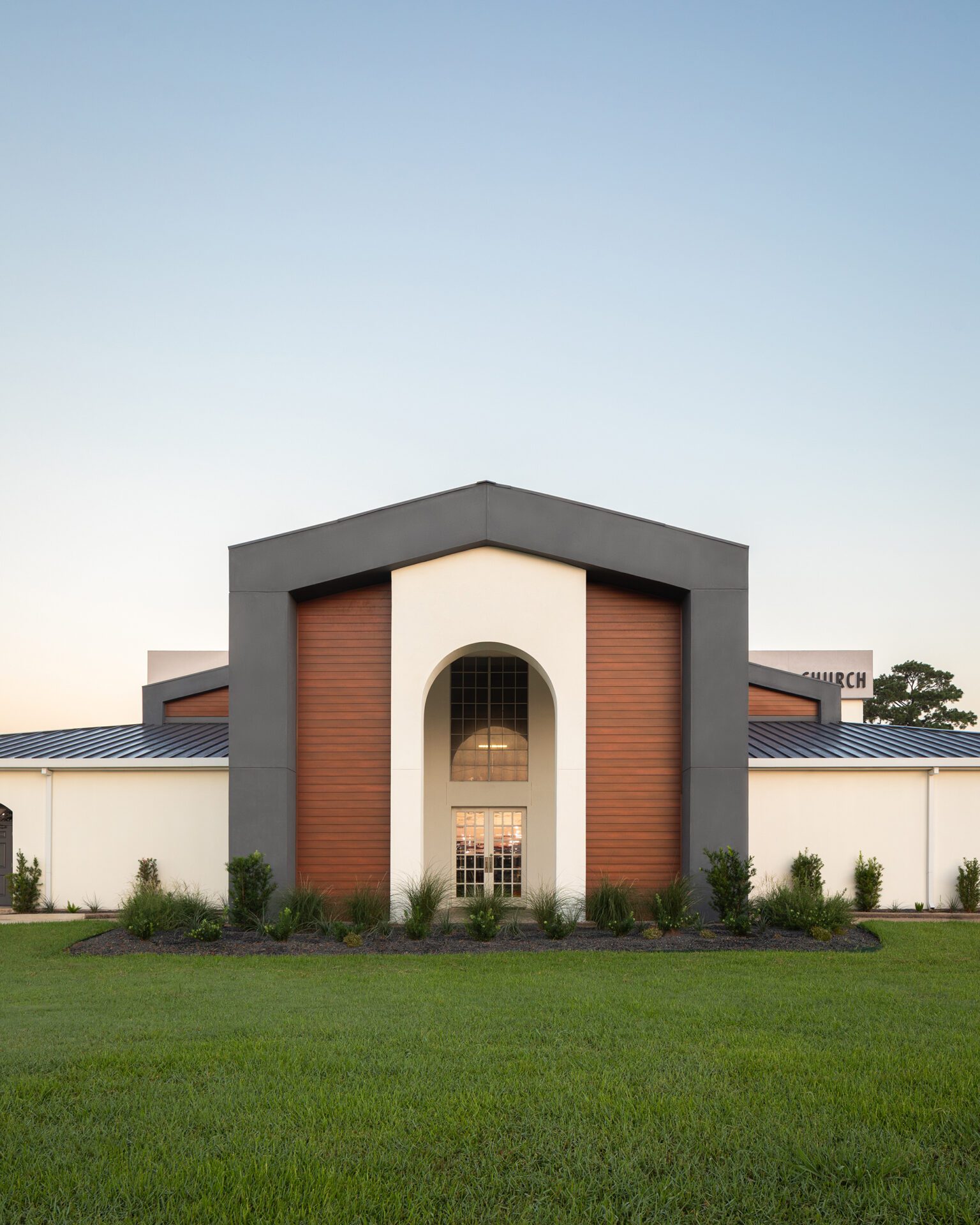 Royalwood Church – Houston, Texas. Arc Three was asked to redesign the exterior of Royalwood Church on Houston’s east side. Church leadership wanted to deviate from the traditional feel of the exterior and match their more contemporary design on the interior. Peeling away older façade ornamentation and re-cladding the building with contrasting materials makes for quite a transformation.
