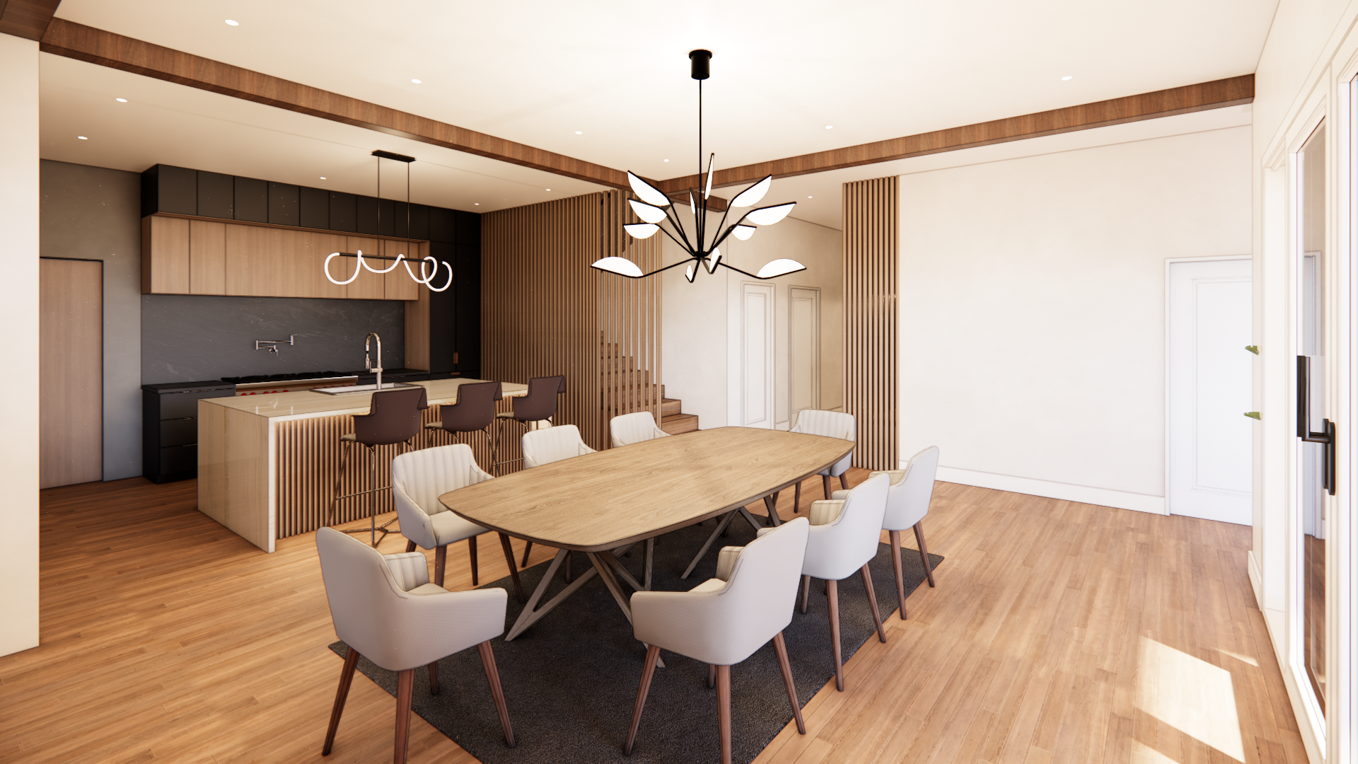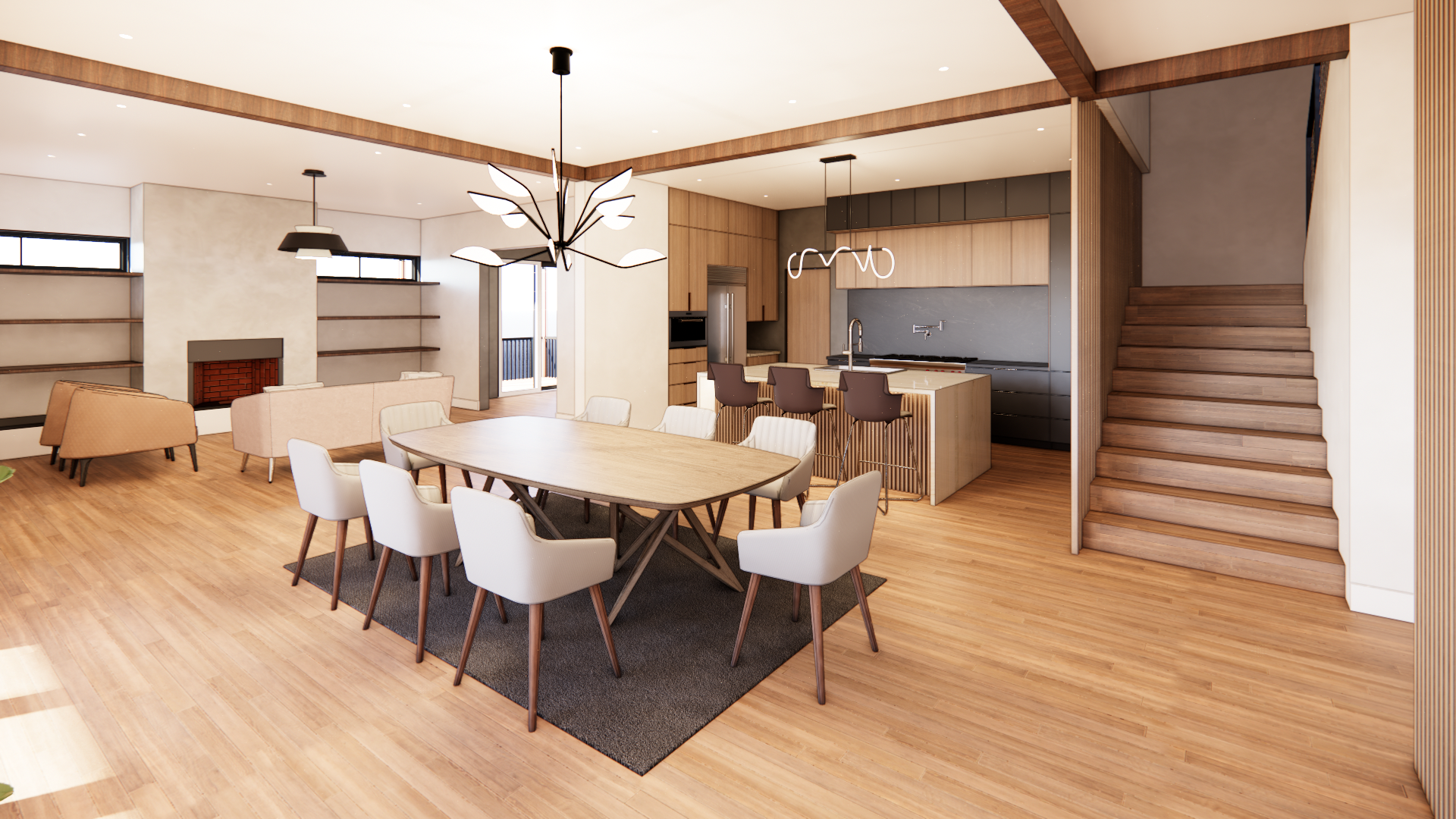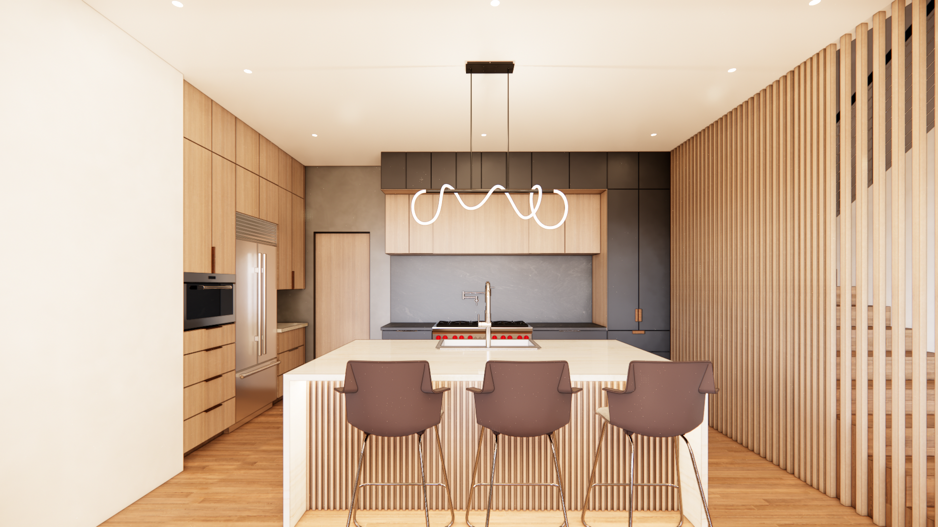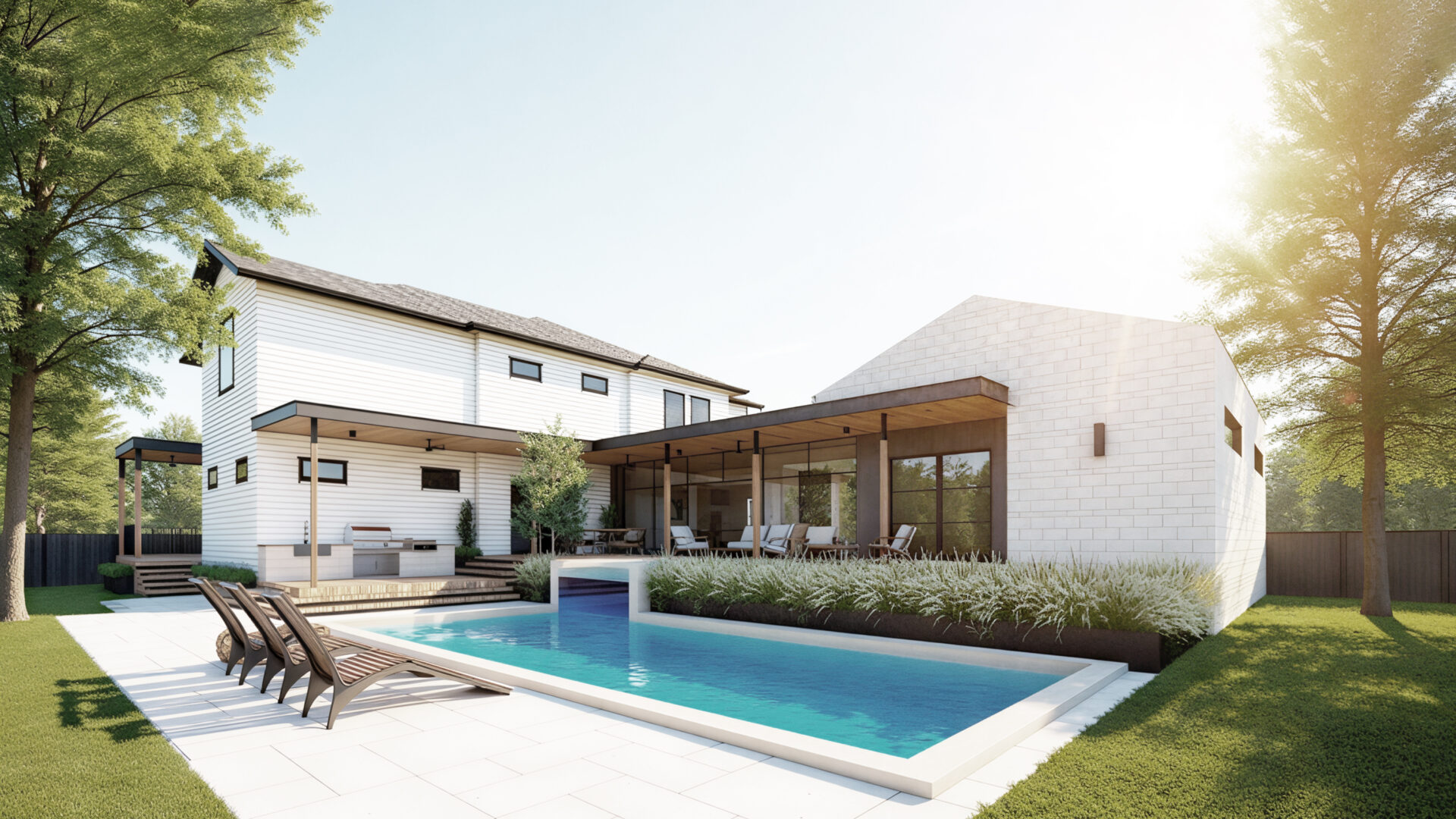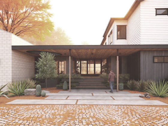West 42nd St Residence – A double lot in Houston’s Heights neighborhood is very hard to come by, but such is the case for these wonderful clients.  Wanting to expand their transitional 2 story home, this family embraced a style change for this single story addition that would cover their vacant lot to the west.  The plan focuses on creating a new primary suite on the ground floor, a fitness center, and pool deck with much needed gathering space.  Smooth stone and darker tone woods contrast well with the craftsman siding of the existing home, and is complimentary to this iconic Houston neighborhood.